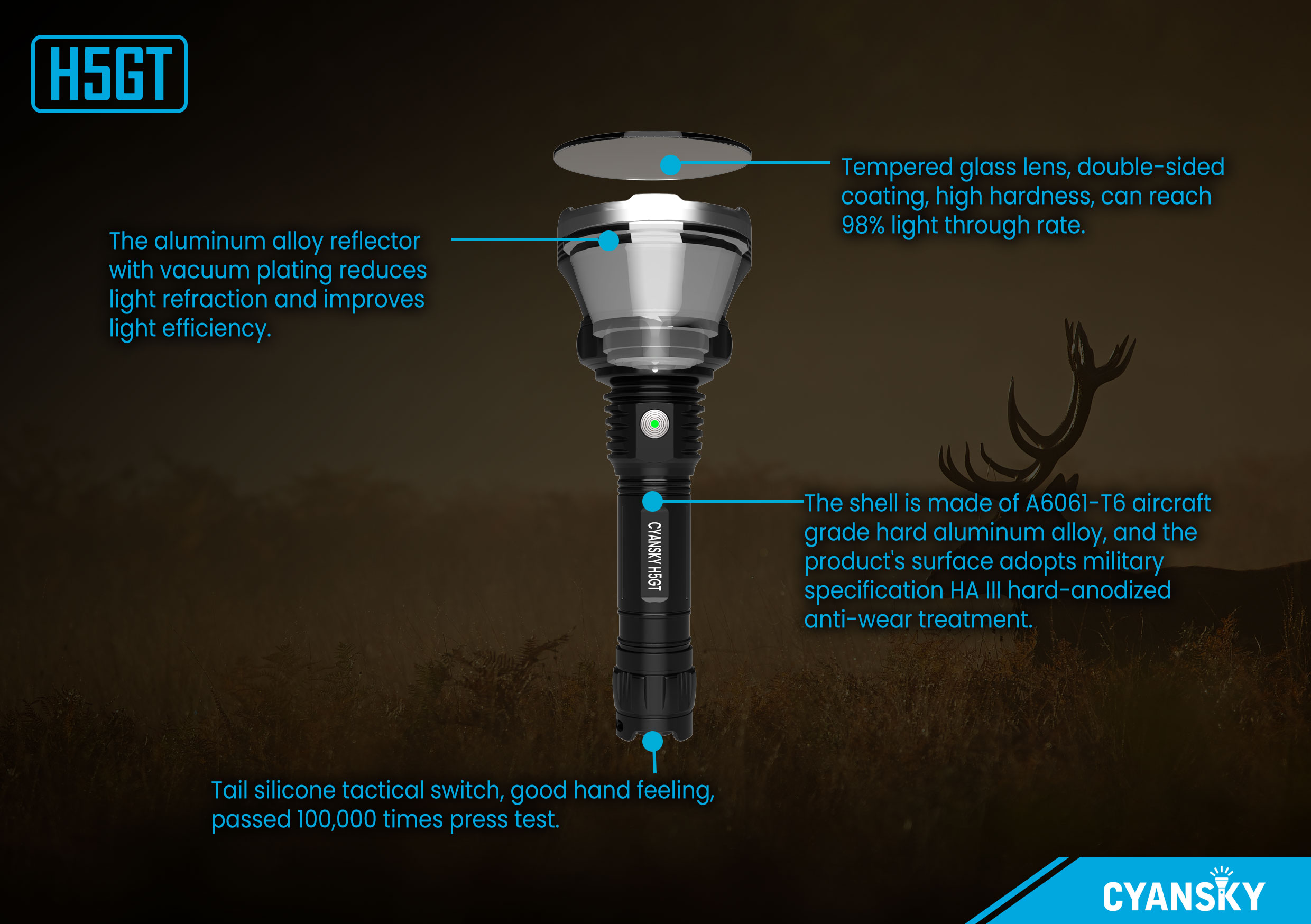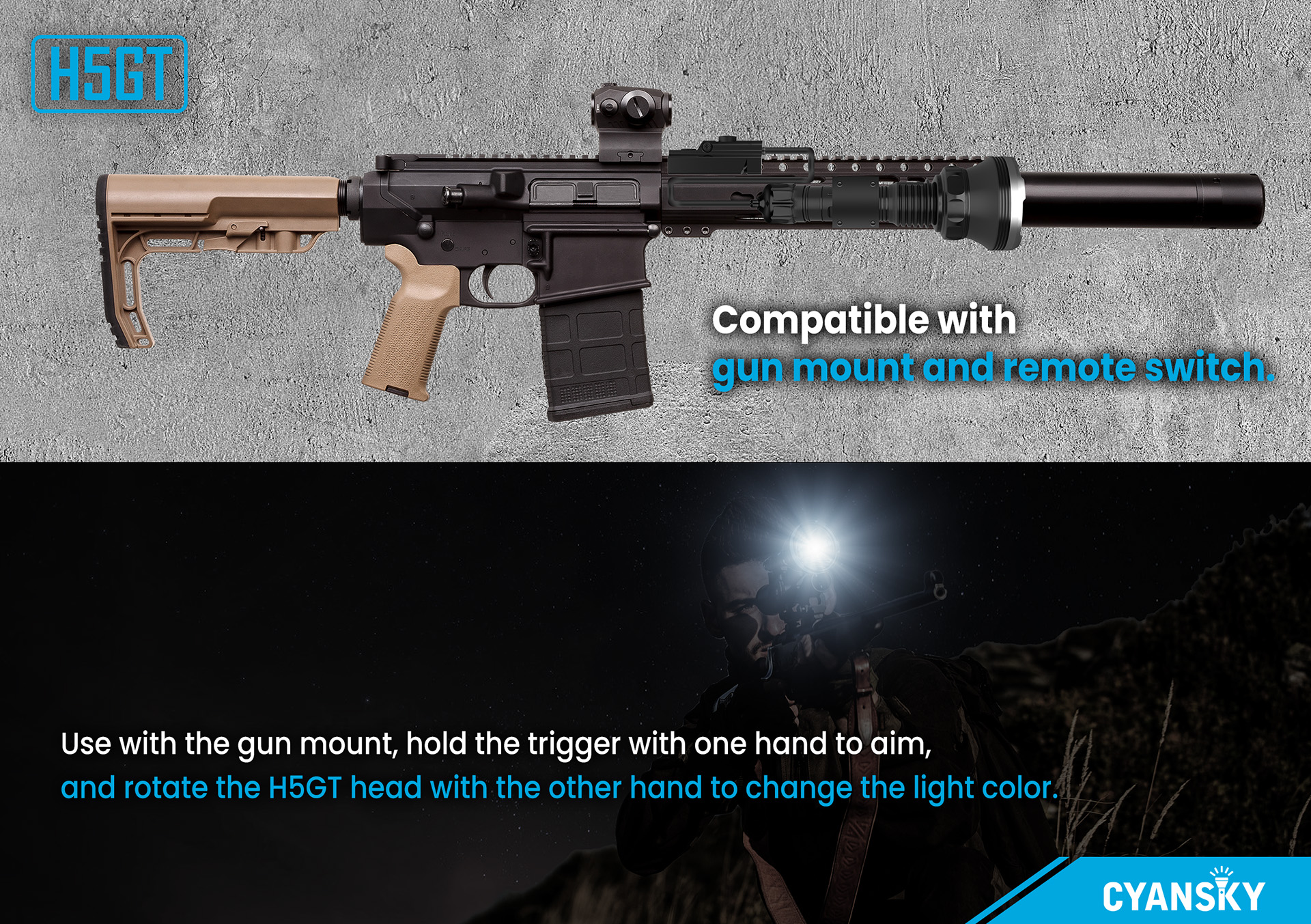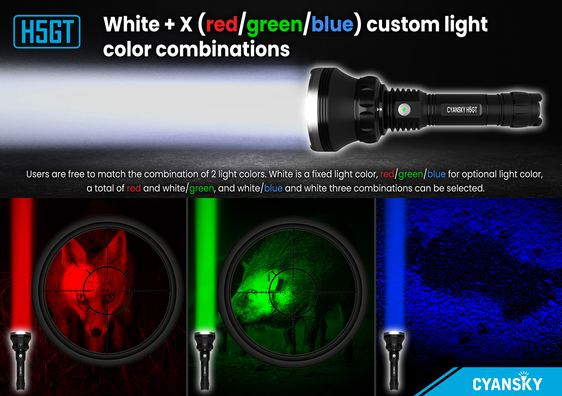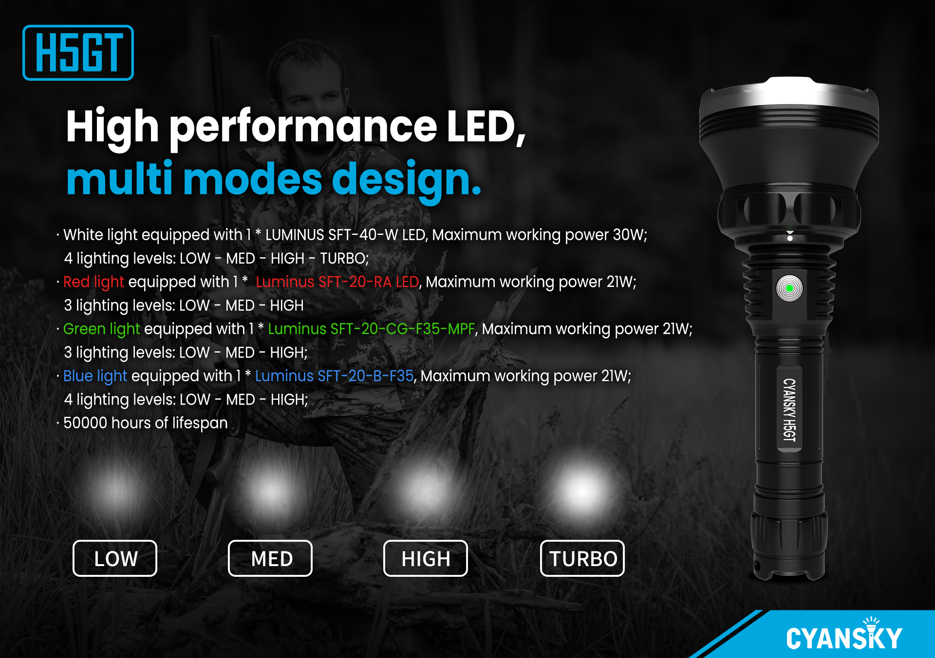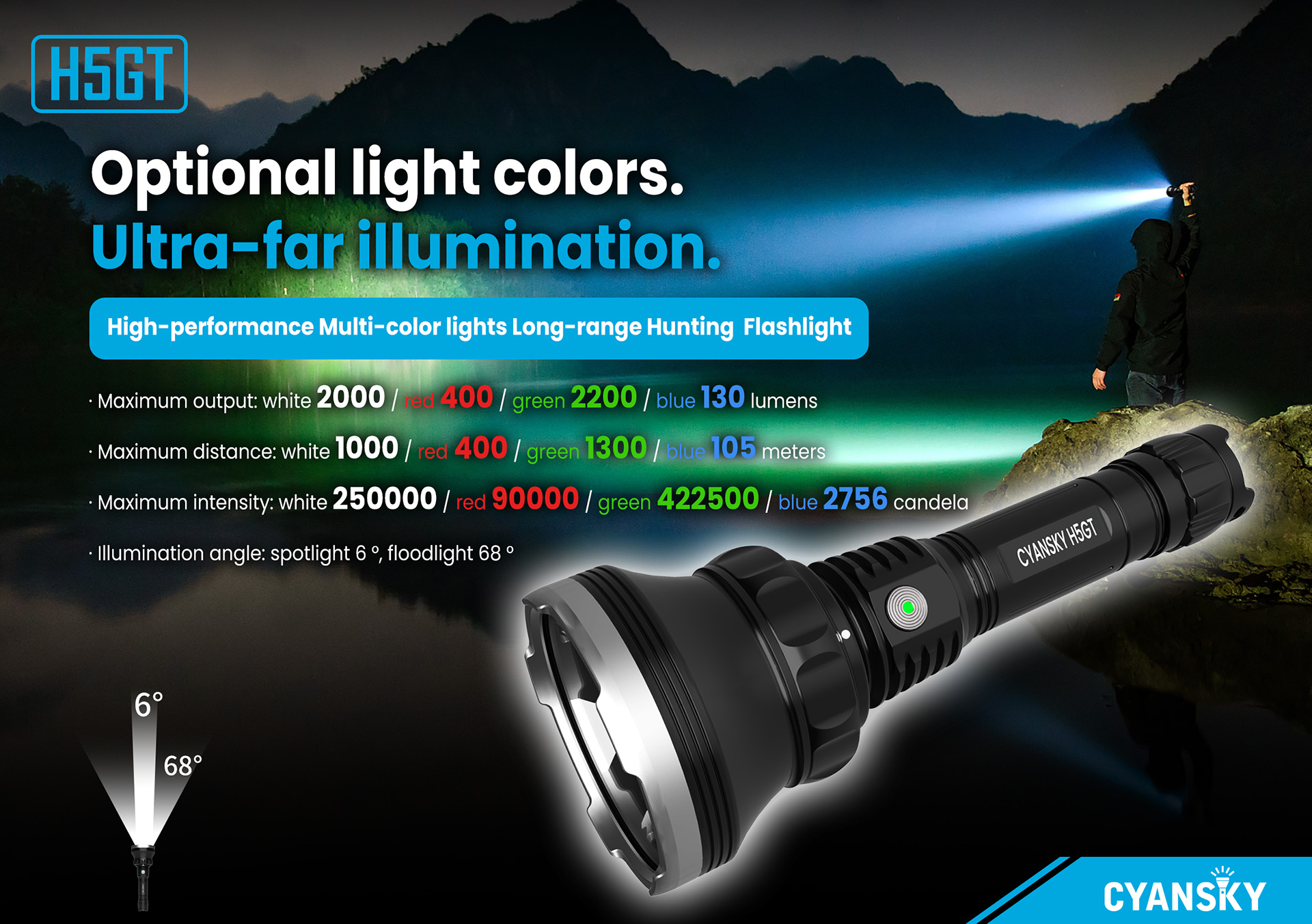The H5gt Hunting Flashlight offers high-brightness, long-lasting illumination for reliable performance in the wild. Its rugged, waterproof design ensures durability in any environment. With multiple modes, it adapts to all your outdoor needs.
